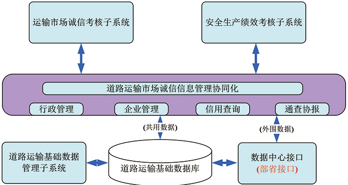 建设与工商、公安、安监等跨职能部门的征信通道,信用信息在省-市-县三级交通运输管理部门将实现共享应用;并通过数据中心供部级系统抽取调用。
